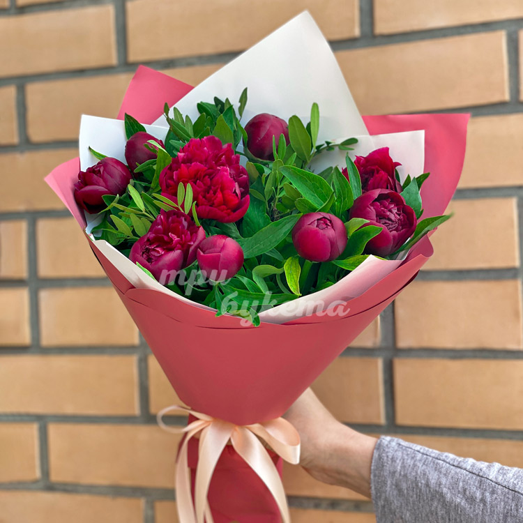 Букет из 9 бордовых пионов