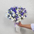 Букет из ирисов и белых тюльпанов