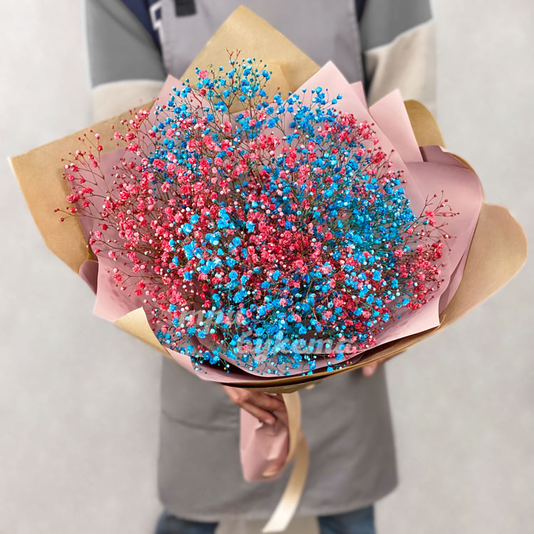 Букет из красной и синей гипсофилы