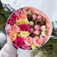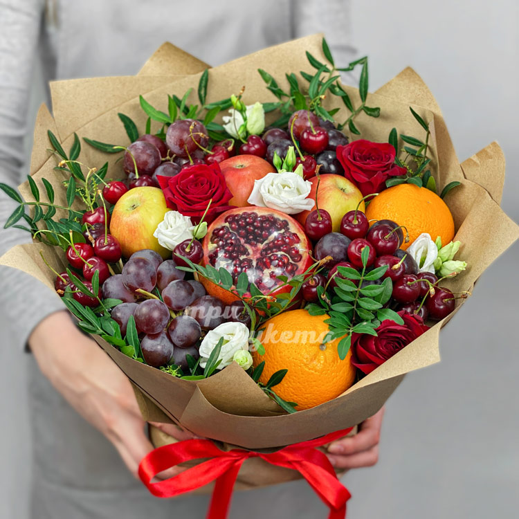 Букет из винограда, вишни и роз