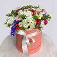 Фиолетовые розы в шляпной коробке