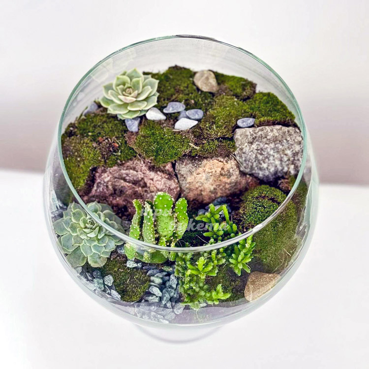 Флорариум чаша с кактусами и мхом
