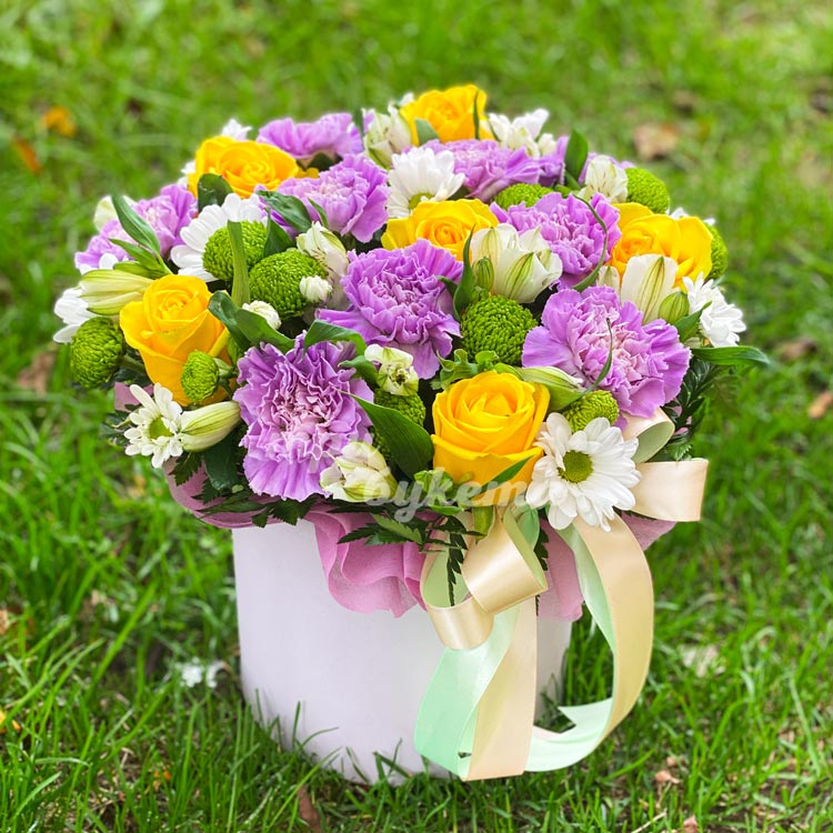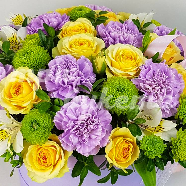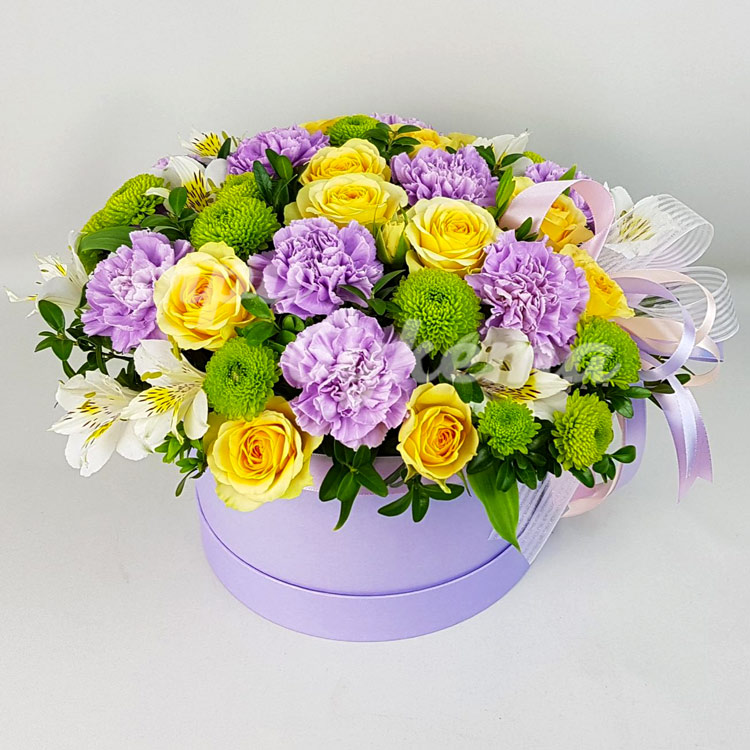 Гвоздики и альстромерии в коробке