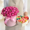 Композиция из 8 макарун и роз