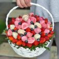 Корзина фруктов и роз на день рождения