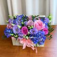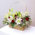 Корзина зеленых роз и бордовых орхидей