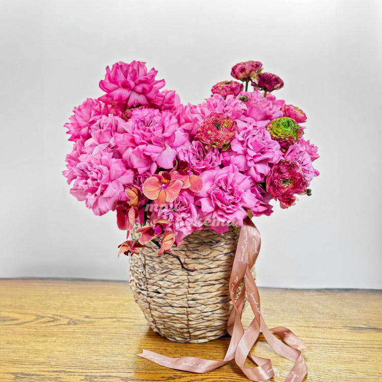 Ярко-розовые французские розы в кашпо